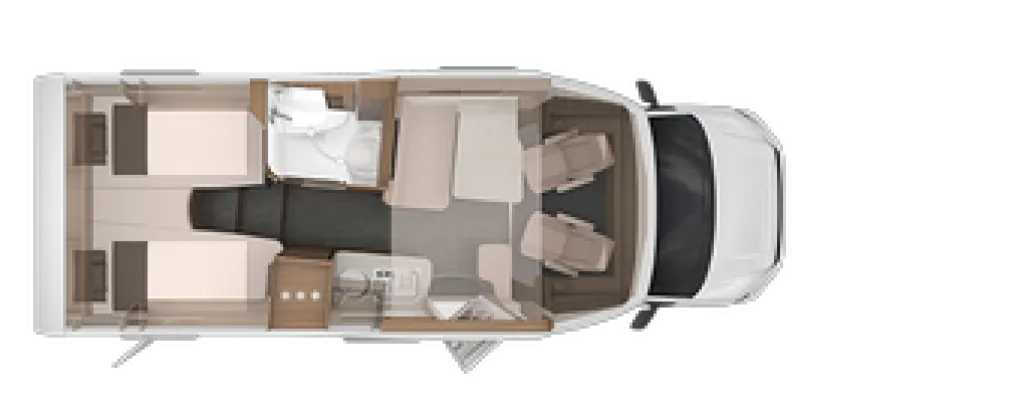 | TV-Halter | Vorverkabelung für TV (Schlafbereich) | | Antennenkomplettsystem Oyster 60 Premium, Twin inkl. SMART TV 27" | Stimmungsvolle Ambientebeleuchtung |