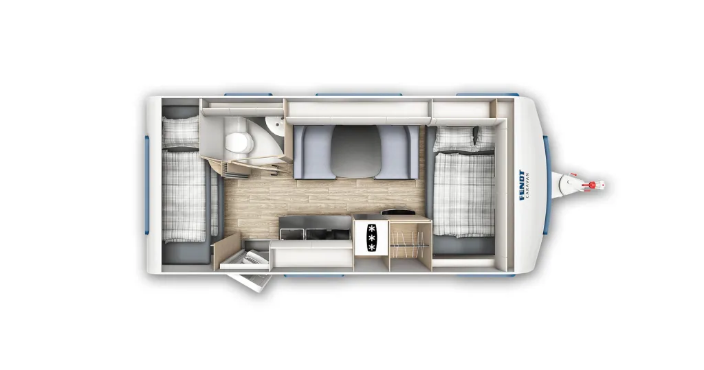 Gewichtserhöhung 2000kg, TV Halter, Spanntuch Elfenbein F-Bett, Dachklima, Mover, Fahrradträger, Fliegengittertür, Sackmarkise